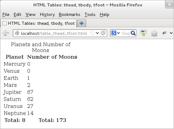 If we load the above example, we would see the three different sections of the table: header, body, and footer.