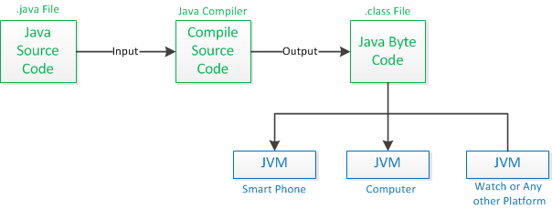 JVM - Java virtual machine, which is available in all the platforms that supports Java, converts the byte code into something that the platform understands. Thus, when we develop an application in Java, we don't have to worry about the platform on which it would be run, as JVM would automatically take care of the platform dependencies. Along with platform independent, features like portability, Object oriented programming language, Multi-threaded and few other features made Java what it is today.