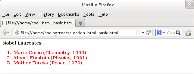In the above example, we could have replaced $("ol") with $("li") and the result would have been identical since the list of elements for both of them is same in the above example. When we load the above page, here is the output: