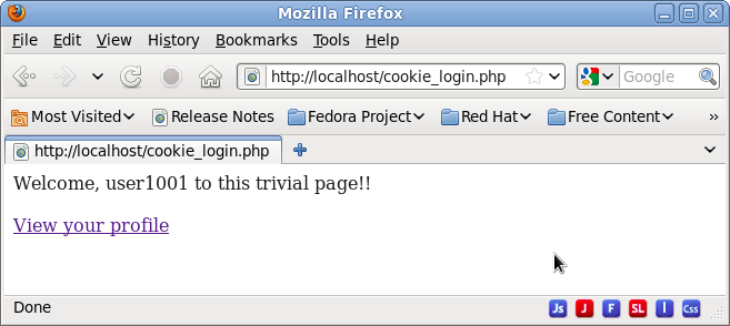 Here is the output of cookie_login.php page, if we login as "user1001" on the form_login.html page:
